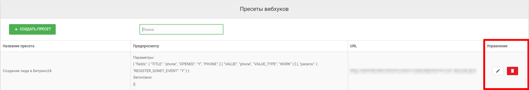 Пресеты вебхуков