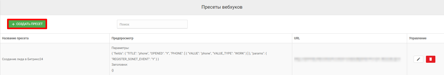 Данный раздел предоставляет возможность создать шаблон вебхука для быстрого его добавления при создании рассылок.