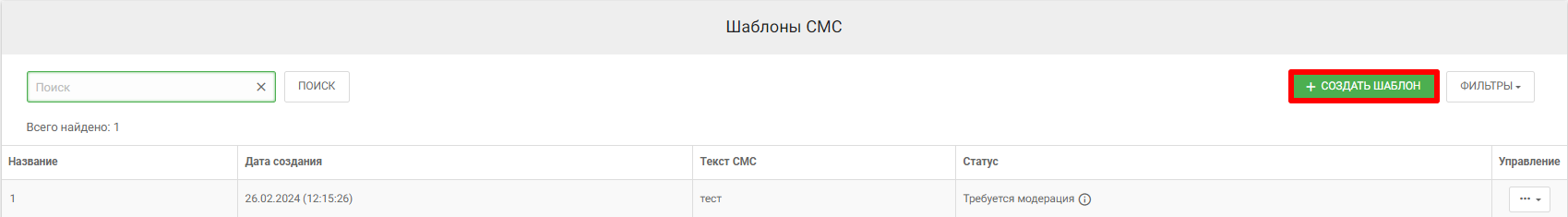 Для начала работы с данным разделом Вам необходимо нажать кнопку “Создать шаблон“.