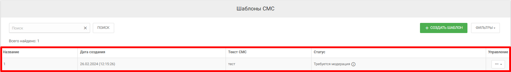 Таблица предназначена для просмотра всех шаблонов рассылок и взаимодействия с любым из них.