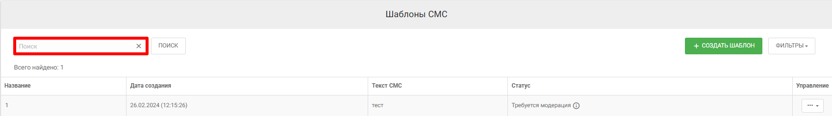 Строка поиска представляет собой функционал по поиску шаблонов по следующим параметрам: