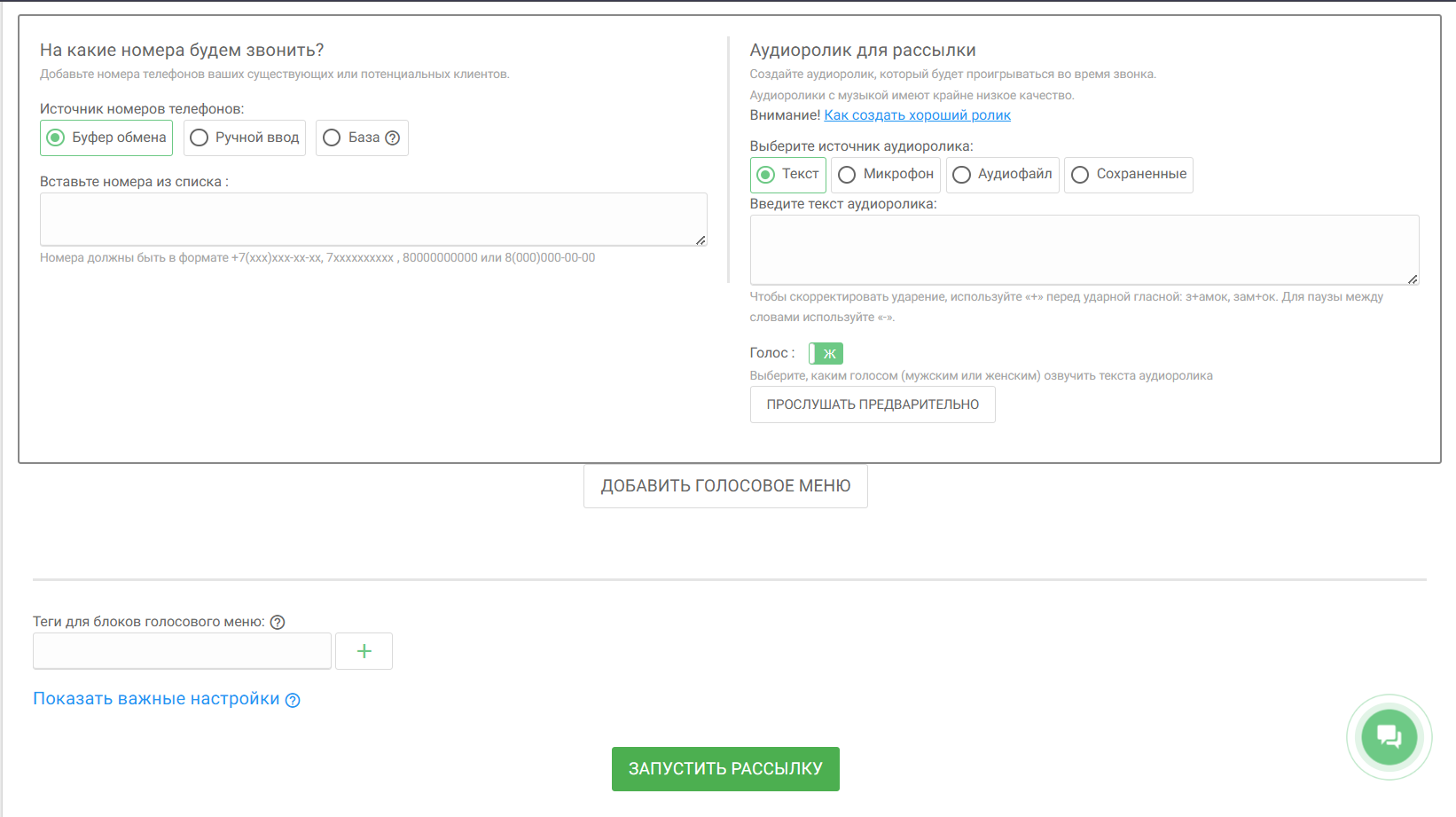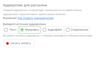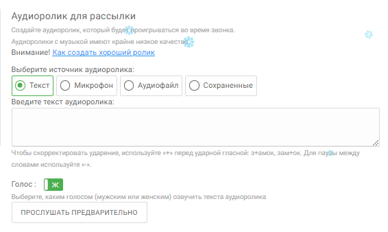 2. Добавить аудиоролик для рассылки;